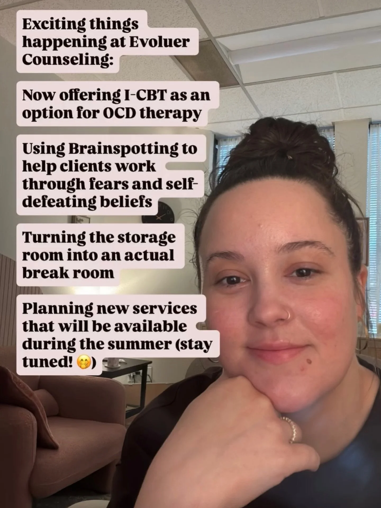 Welcome! I created Evoluer Counseling to be a space where anyone struggling with anxiety, OCD, trauma, or related issues can learn the skills they need to work through their biggest challenges and create a life they genuinely love.